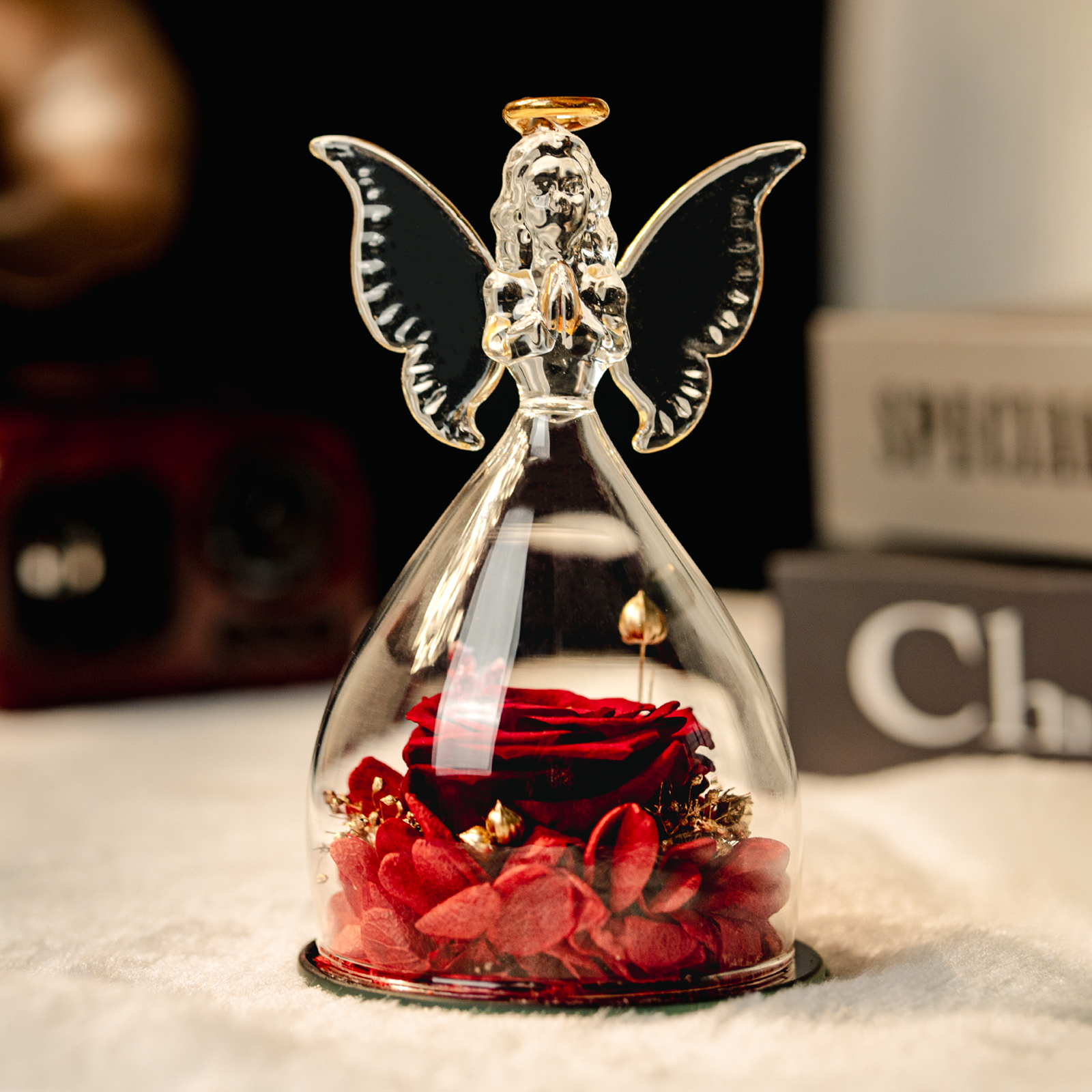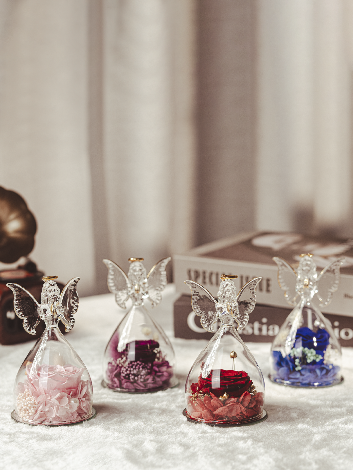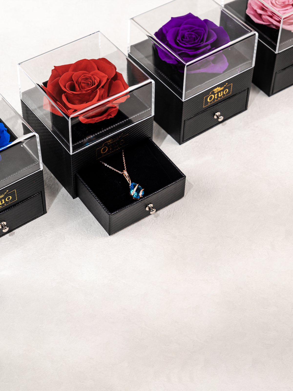 We recommend keeping our products away from direct sunlight and extreme heat; store them in a cool, dry place. We also recommend avoiding contact with water. Also, do not remove from the original box or place anything on the rose.